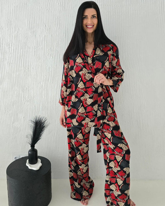 Trīsdaļīgs crepes auduma bikšu kostīms
