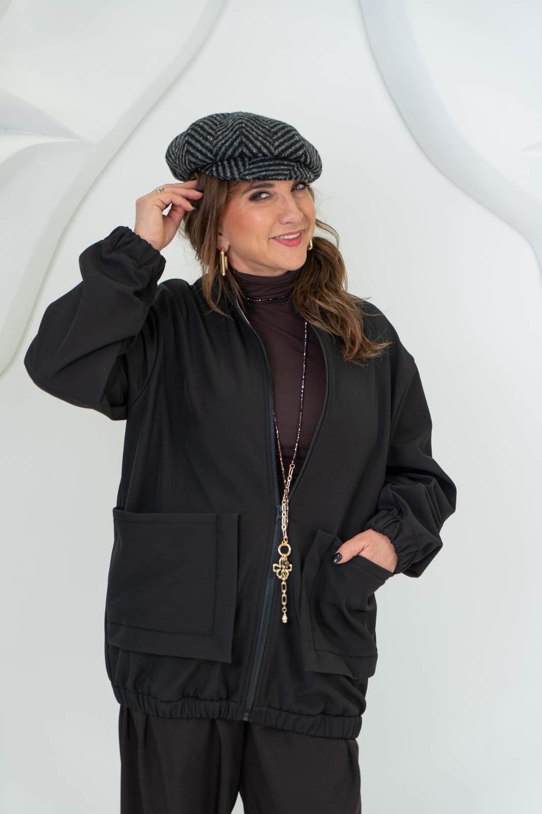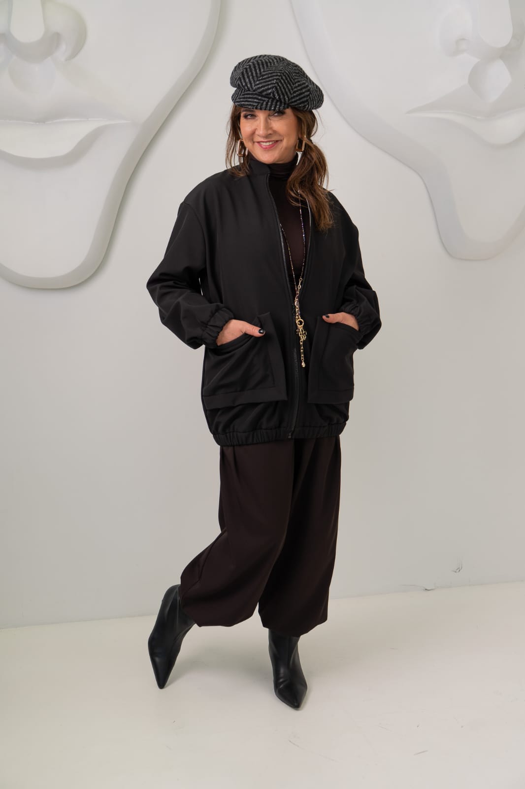 Bomberjaka transformējama garā un īsā veidā ar opciju ielocīt uz iekšpusi.