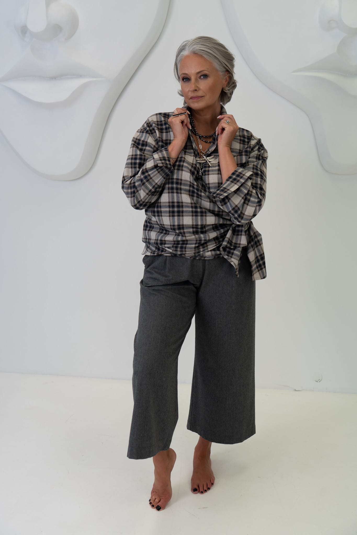 Pelēkas Capri stila bikses